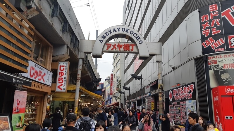 Como mencionamos anteriormente, Ameyoko se encuentra entre la zona de Ueno y la estación de Okachimachi, así que a estas alturas ya debes saber que estas dos estaciones son las más idóneas para llegar a la zona. Si llegas por la estación de Ueno simplemente fíjate al otro lado de la calle tomando la salida Shinobazu, se encuentra justo junto al Yodobashi Camera.