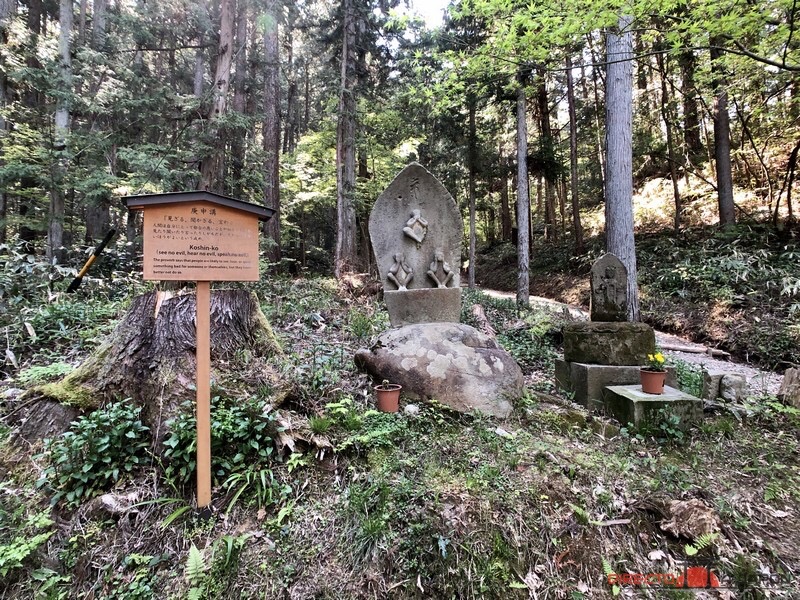 Desde el Santuario Ena nos dirigiremos hacia el suroeste, ya más subidos en la ladera de la montaña. Cruzaremos zona boscosa, algún otro templo y un cementerio muy chulo (queda raro decir que un cementerio es chulo pero es que era precioso). Ojo porque por esta zona hay carteles advirtiendo de que pueden haber osos por la zona. El amigo que nos guio nos dijo "daiyoubu, dauyoubu" (tranquilos, tranquilos) pero nos pusimos un pelín nerviosos al ver los carteles.